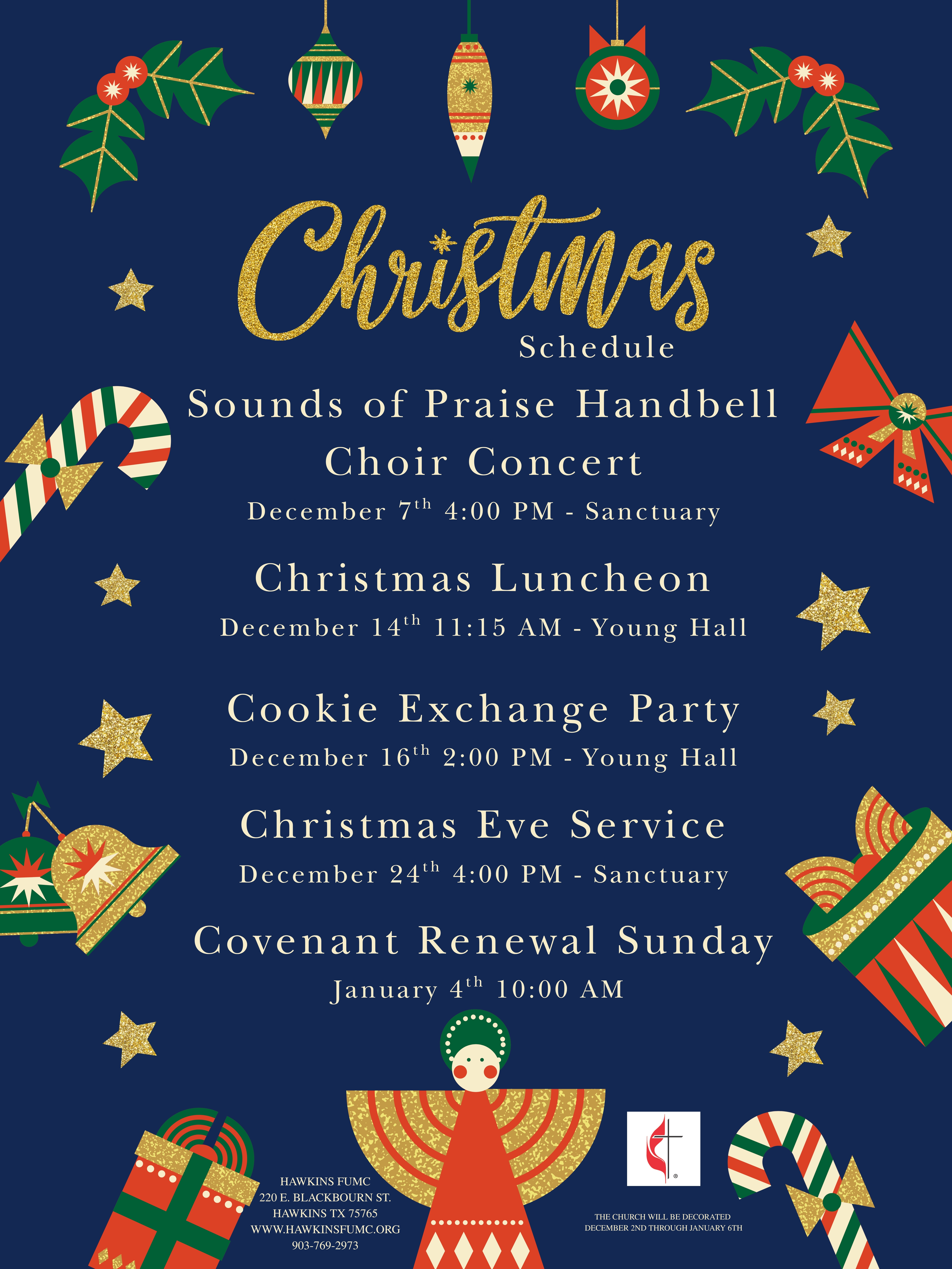 Please come join us this season All activities will be in our Sanctuary or Young Fellowship Hall. Our Church will be decorated for the Holiday season from December 2nd through January 6th, 2026. Please come to one, a few or all of these events.